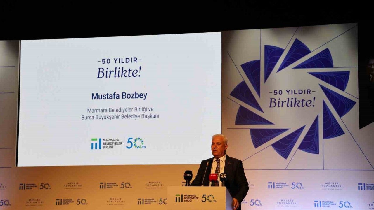 Başkan Bozbey, Marmara Denizi için ellerinden geleni yapmaya kararlı olduklarını ifade ederek, "Marmara Denizi’nin nefes almaya başlamasının çözümünün, merkezi yönetimle birlikte hareket edilerek mümkün olacağına inanıyoruz. Merkezi yönetimin bir an önce belediyelerimizle iletişim ve çözüm noktasında bir araya gelmesi ve Marmara Denizi Eylem Planı’nda alınan kararların biran önce uygulanmasının sağlanması gerekiyor. Buradan açıkça ifade etmek isterim. Biz, Marmara Denizi için elimizden geleni yapmaya kararlıyız. Kıyısı bulunan tüm belediyeler olarak, bu kararlılığımızı her alanda ifade etmeye çalışıyoruz. Çevre, Şehircilik Ve İklim Değişikliği Bakanlığımızın da bu konuda yer tahsisi ve finansman konularında gerekli desteği sağlaması, bu sürecin başarısı açısından olmazsa olmaz. Mutlaka birlikte hareket etmek ve birlikte çözüm üretmek sorumluluğunda olmamız gerekiyor. Kurucu Başkanımız Ahmet Enön, bir zamanlar belediyelerin müşterek sorunlarını görüşmek üzere Marmara Adası’na davette bulunmuştu. Bizler de bugün Marmara Denizi’ni korumak için ortak bir çağrı yapıyoruz. En ivedi zamanda bir araya gelelim ve Marmara Denizi’ni kurtarmak için birlikte harekete geçelim. Marmara Denizi hepimizin, Marmara Denizi tüm Türkiye’nindir. Çünkü onu korumak yalnızca bugünü değil; geleceği, çocuklarımızın yaşam hakkını ve kentlerimizin direnç kapasitesini korumaktır. Bu yüzden 50. yılımızda gerçekleştirdiğimiz ilk meclis toplantımızın ilk oturumunu Marmara Denizi’ne ayırmak istedik" diye konuştu.