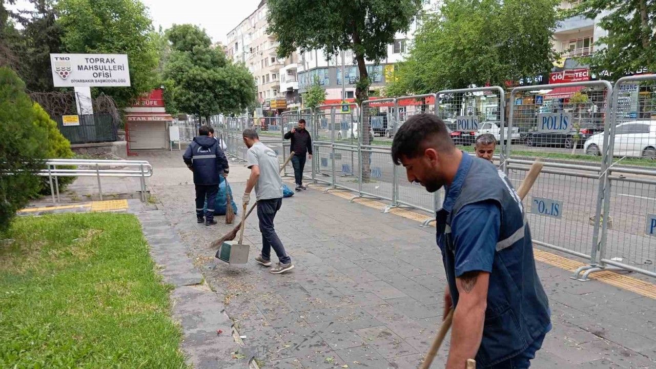 Çöplerin dağılmasıyla birlikte sokaklarda ve caddelerde temizlik yapan görevliler çöpleri zorlukla toplayabildi.