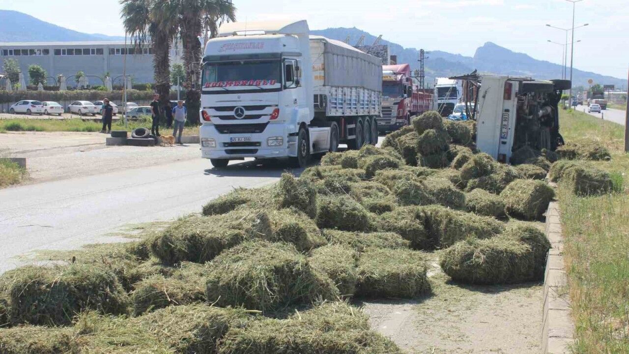 Manisa’nın Salihli ilçesinde saman yüklü kamyonetin refüje çarpıp takla atması sonucu meydana gelen kazada 1 kişi yaralandı. Kazada kamyonette bulunan saman balyaları ise yola saçıldı.