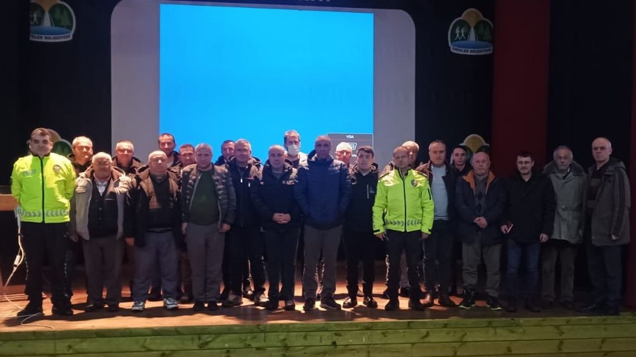 Sinop’un Erfelek ilçesinde polis ekipleri tarafından okul müdürleri ve servis şoförlerine yönelik trafik eğitimi verildi.
