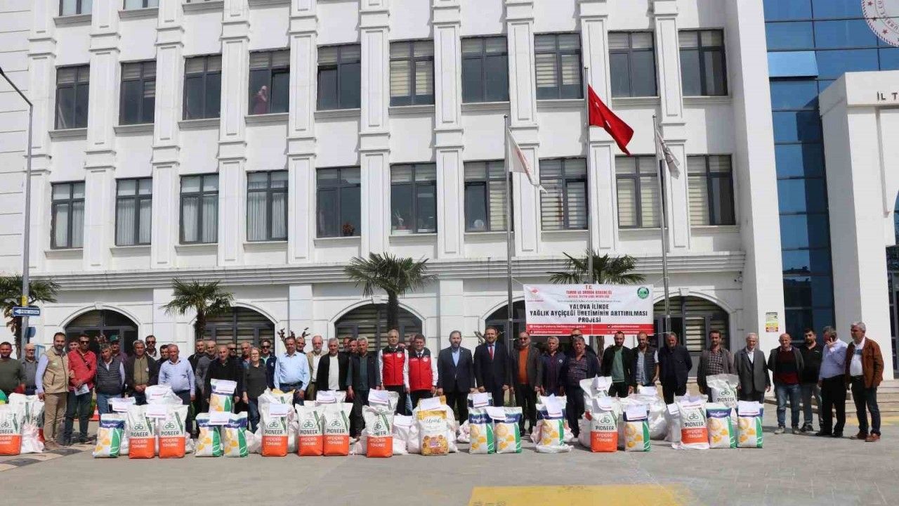 Yalova Tarım ve Orman İl Müdürlüğü tarafından 51 çiftçiye 4 bin 200 dekar alanda üretilmesi için toplam 1 ton 890 kilo yağlık ayçiçeği tohumu dağıttı.